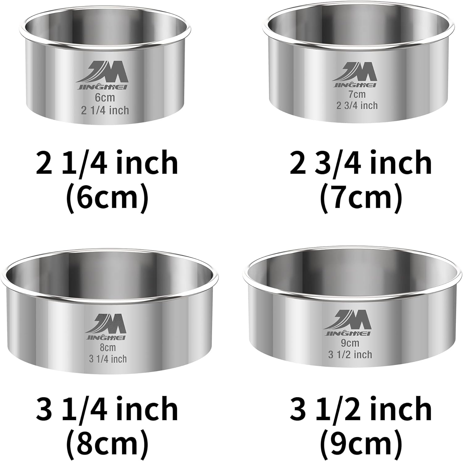M JNGMEI 4 Pieces Stainless Steel Cookie Cutter Set 2.25inch, 2.75inch, 3.25inch,3.5inch Biscuit Plain Edge Round Cutters Sizes Shape Molds GIFT PACKAGE